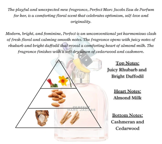 The playful and unexpected new fragrance, Perfect Marc Jacobs Eau de Parfum for her, is a comforting floral scent that celebrates optimism, self-love and originality.